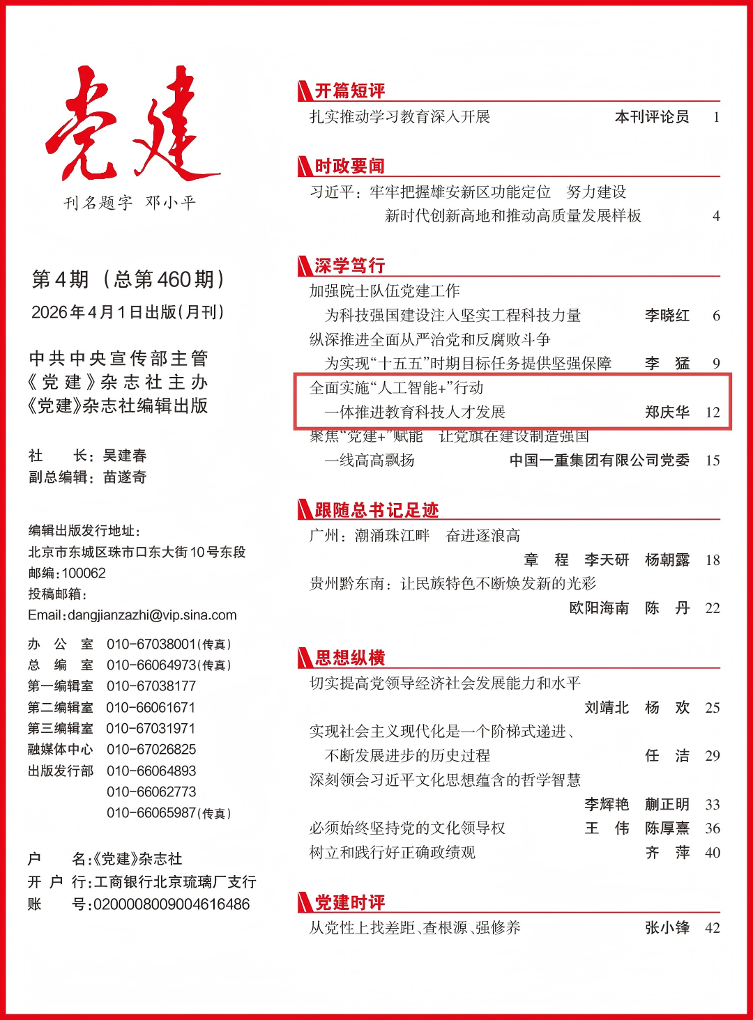 从尝试室到出产线的“鸿沟”是限制大学科技立异效能的环节瓶颈之一。融合物理纪律、专业学问取人工智能算法,4月1日出书的2026年第4期《党建》刊发同济大学党委、中国工程院院士郑庆华的签名文章,让更多科技尽快为现实出产力”。中国特色世界一流大学必然要有具备全球领先学术实力、深挚中汉文化基因、明显国度计谋导向的中国气派一流学科集群。研制土木、医学、交通、设想等学科大模子,